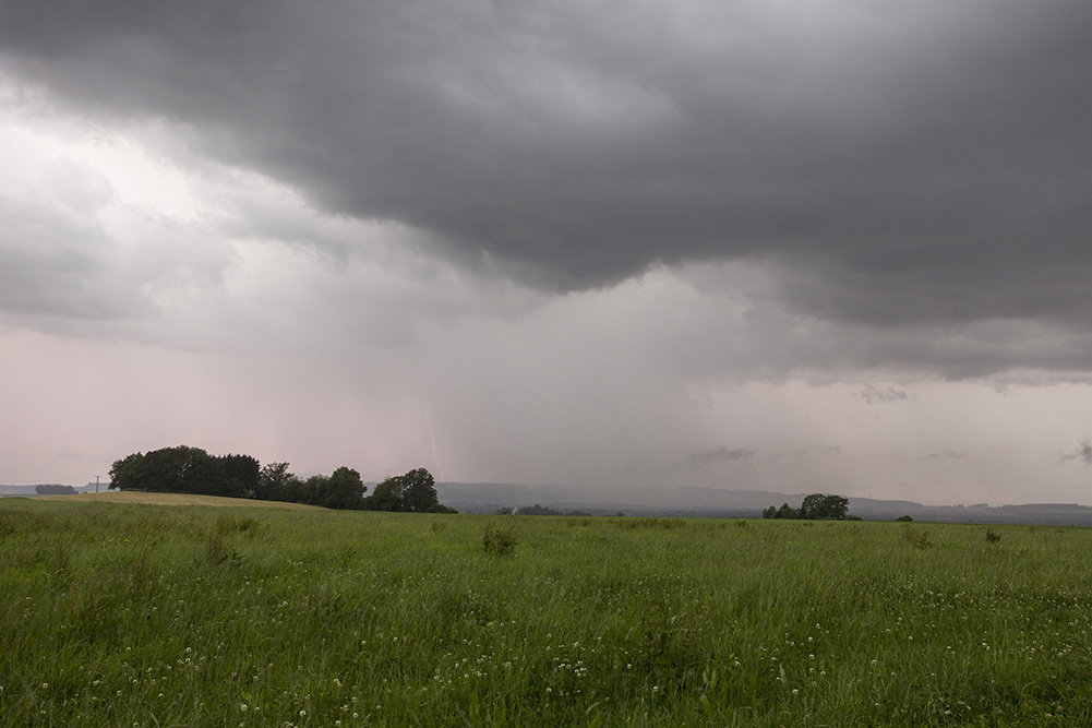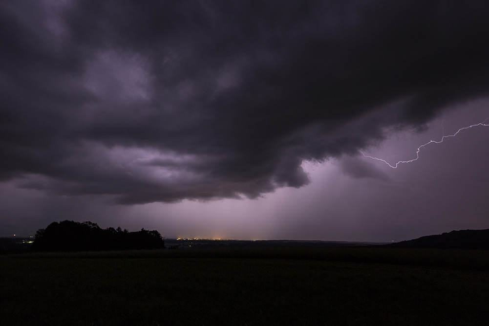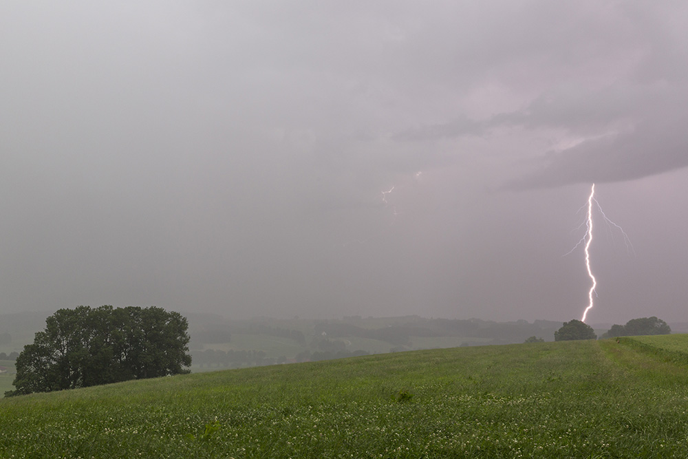 Nach ersten Gewittern am Nachmittag bei Weilheim und Füssen zog am Abend ein starker Cluster durch das Allgäu und Oberbayern. Im Allgäu gab es südlich von Biberach viele Einschläge und später bei Memmingen beeindruckende