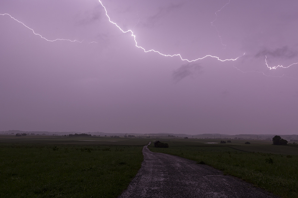 . Am südwestlichen Ende bildeten sich neue Gewitter. Um Landsberg gabs in der Nacht Starkregen und eine hohe Blitzfrequenz. Bei Weilheim konnten wir dann noch schöne